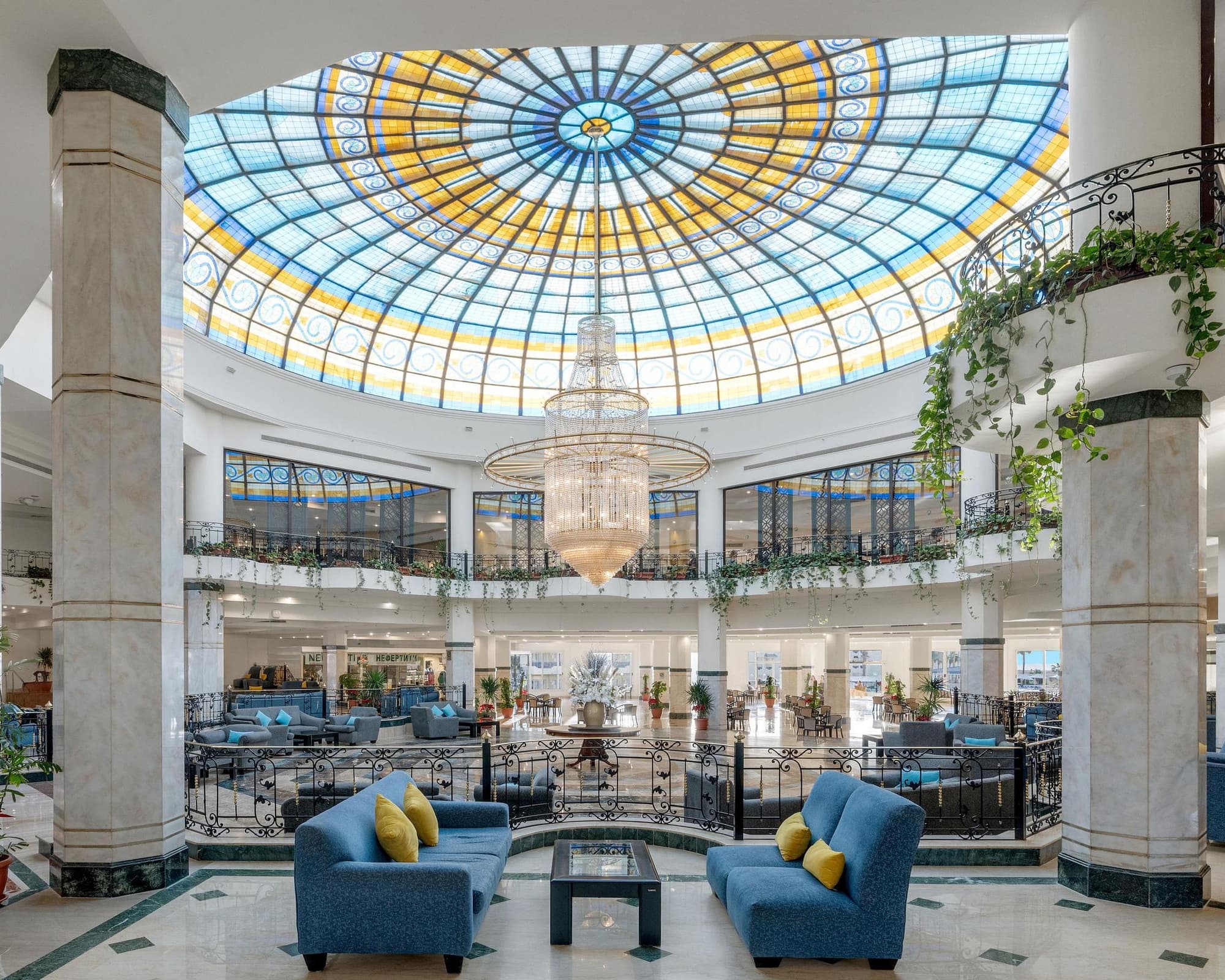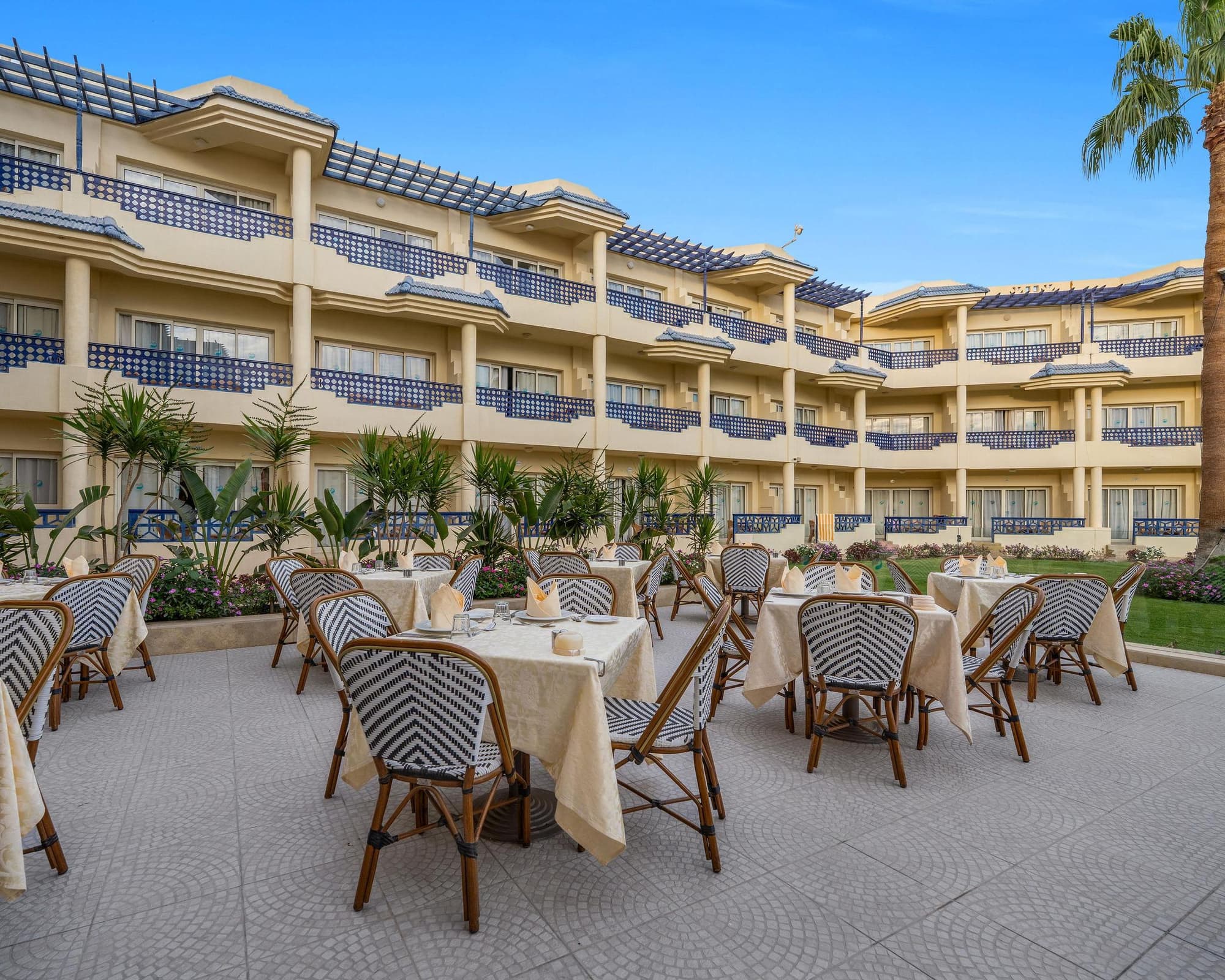 Located on the rocky beach of sharks bay and 5 minutes walking from soho square, the Grand Oasis Sharm El Sheikh is an all inclusive 4 stars resort spread on 52,000 m2 of beautiful landscapes ground with fantastic views on the Red Sea. The resort offers bright accommodation and features different range of facilities including a private beach, 3 outdoors pools, 2 heated, a well-equipped gym, one tennis court, a Spa center, a beach volleyball & a soccer field.